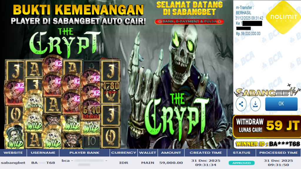 BUKTI KEMENANGAN 31 DESEMBER 2025 DI GAME THE CRYPT WD 59 JUTA