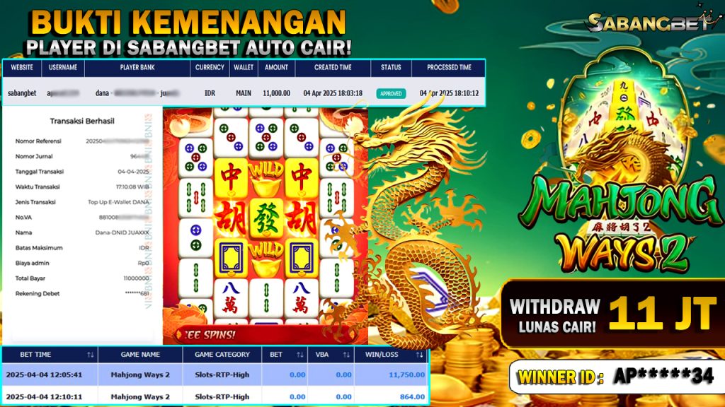 BUKTI KEMENANGAN 5 APRIL 2025 DI GAME MAHJONG WAYS 2 WD 11 JUTA