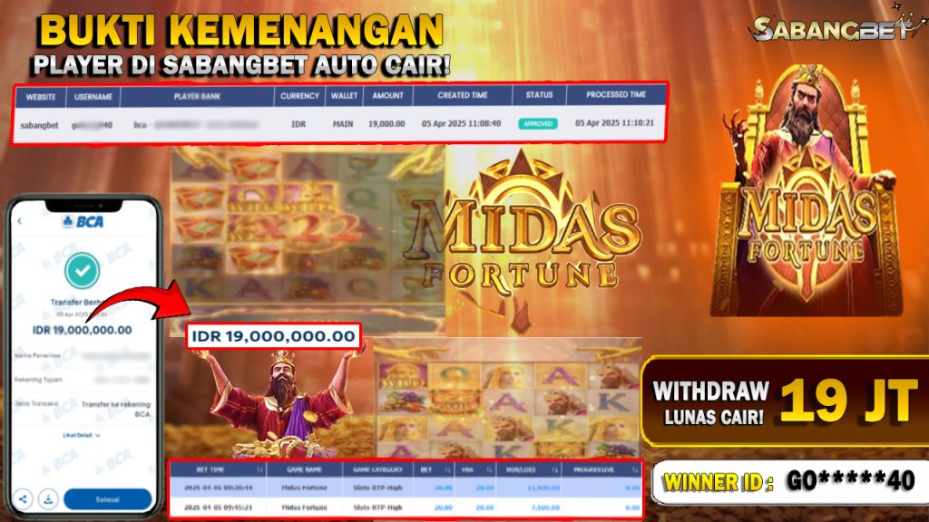 BUKTI KEMENANGAN 5 APRIL 2025 DI GAME MIDAS FORTUNE WD 19 JT