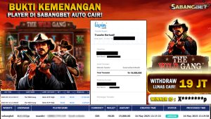 BUKTI KEMENANGAN 16 MEI 2025 DI GAME THE WILD GANG WD 19 JUTA