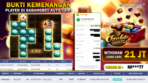 BUKTI KEMENANGAN 15 MEI 2025 DI GAME CHOCOLATE DELUXE PG SOFT WD 21 JUTA