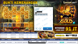 BUKTI KEMENANGAN 14 MEI 2025 DI GAME GAMSONES GOLD PG SOFT WD 91 JUTA