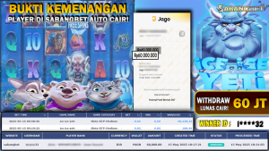 BUKTI KEMENANGAN 15 MEI 2025 DI GAME ICE ICE YETI WD 60 JT