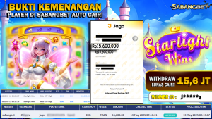 BUKTI KEMENANGAN 13 MEI 2025 DI GAME STARLIGHT WINS WD 15,6 JUTA