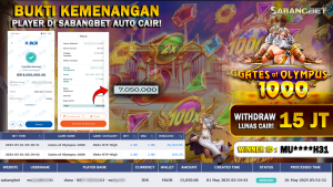 BUKTI KEMENANGAN 01 MEI 2025 DI GAME GATES OF OLYMPUS 1000 WD 15 JUTA