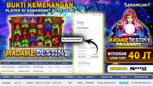 BUKTI KEMENANGAN 03 MEI 2025 DI MADAME DISTINY WD 40 JUTA