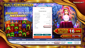 BUKTI KEMENANGAN 16 MARET 2026 DI GAME Madame Destiny megaways WD 16 JUTA