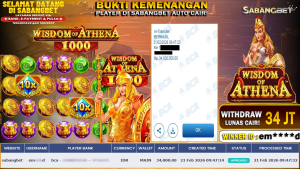 BUKTI KEMENANGAN 21 FEBRUARI 2026 DI GAME WISDOM OF ATHENA WD 34 JUTA