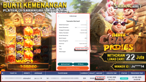 BUKTI KEMENANGAN 22 FEBRUARI 2026 DI GAME Three Crazy Piggies WD 22 JUTA