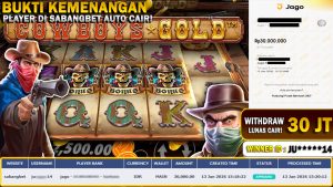BUKTI KEMENANGAN 13 JANUARI 2026 DI GAME COWBOYS GOLD WD 30 JUTA