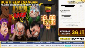 BUKTI KEMENANGAN 28 DESEMBER 2025 DI GAME RACE RAGE WD 36 JUTA