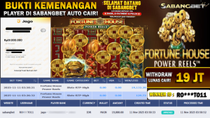 BUKTI KEMENANGAN 11 NOVEMBER 2025 DI GAME FORTUNE HOUSE WD 19 JUTA