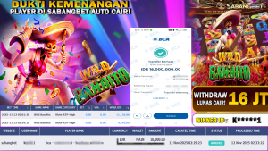 BUKTI KEMENANGAN 12 NOVEMBER 2025 DI GAME WILD BANDITO WD 16 JUTA
