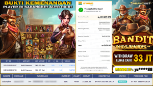 BUKTI KEMENANGAN 07 NOVEMBER 2025 DI GAME BANDIT MEGAWAYS WD 33 JUTA