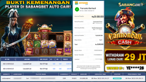 BUKTI KEMENANGAN 08 NOVEMBER 2025 DI GAME CANNONBALL CASH WD 29 JUTA