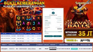 BUKTI KEMENANGAN 21 OKTOBER 2025 DI GAME LAVA BALLS WD 35 JUTA