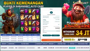 BUKTI KEMENANGAN 22 OKTOBER 2025 DI GAME DWARF & DRAGON WD 34 JUTA