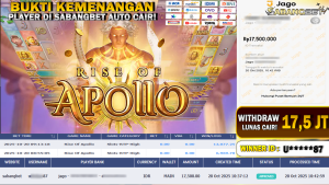 BUKTI KEMENANGAN 20 OKTOBER 2025 DI GAME RISE OF APOLLO WD 17,5 JUTA