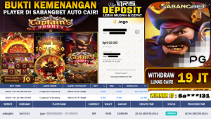 BUKTI KEMENANGAN 22 OKTOBER 2025 DI GAME CAPTAIN’S BOUNTY WD 19 JUTA