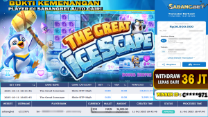 BUKTI KEMENANGAN 11 OKTOBER 2025 DI GAME THE GREAT ICESCAPE WD 36 JUTA