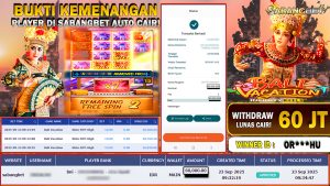BUKTI KEMENANGAN 23 SEPTEMBER 2025 DI GAME BALI VACATION WD 60 JUTA