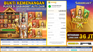 BUKTI KEMENANGAN 18 SEPTEMBER 2025 DI GAME PRINCESS OF RA WD 36 JUTA