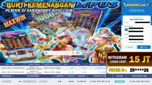 BUKTI KEMENANGAN 17 SEPTEMBER 2025 DI GAME gates of olympus 1000 WD 15 JUTA