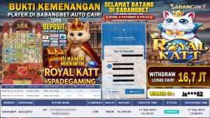 BUKTI KEMENANGAN 17 SEPTEMBER 2025 DI GAME ROYAL KATT WD 16,7 JUTA