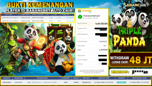 BUKTI KEMENANGAN 12 SEPTEMBER 2025 DI GAME TRIPLE PANDA WD 48 JUTA