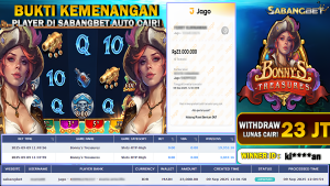 BUKTI KEMENANGAN 09 SEPTEMBER 2025 DI GAME BONNY’S TREASURES WD 23 JUTA