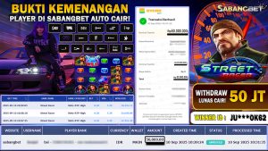 BUKTI KEMENANGAN 10 SEPTEMBER 2025 DI GAME STREET RACER WD 50 JUTA