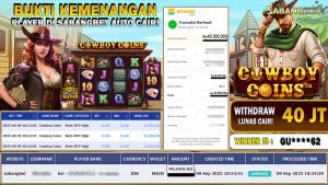 BUKTI KEMENANGAN 09 SEPTEMBER 2025 DI GAME COWBOY COINS WD 40 JUTA