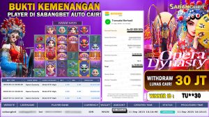 BUKTI KEMENANGAN 11 SEPTEMBER 2025 DI GAME OPERA DYNASTY WD 30 JUTA