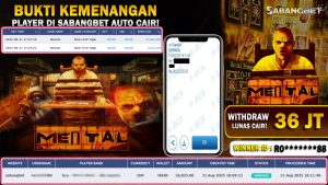 BUKTI KEMENANGAN 31 AGUSTUS 2025 DI GAME MENTAL WD 36 JUTA