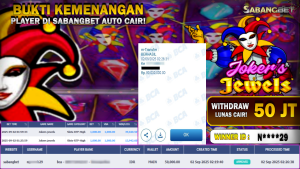 BUKTI KEMENANGAN 02 SEPTEMBER 2025 DI GAME JOKERS JEWELS WD 50 JUTA