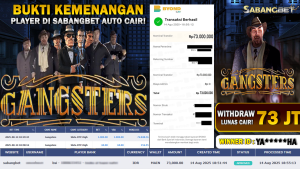 BUKTI KEMENANGAN 14 AGUSTUS 2025 DI GAME GANGSTERS WD 73 JUTA