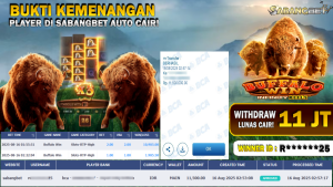 BUKTI KEMENANGAN 16 AGUSTUS 2025 DI GAME BUFFALO WIN WD 11,5 JUTA