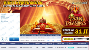 BUKTI KEMENANGAN 15 JULY 2025 DI GAME TSAR TREASURES WD 31 JUTA