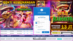 BUKTI KEMENANGAN 16 JULI 2025 DI GAME WILD BANDITO WD 13 JUTA