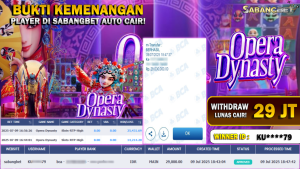 BUKTI KEMENANGAN 09 JULY 2025 DI GAME OPERA DYNASTY WD 29 JUTA