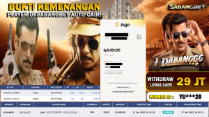 BUKTI KEMENANGAN 17 JUNI 2025 DI GAME DABANGGG WD 29 JUTA