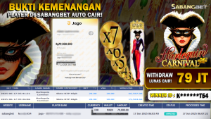 BUKTI KEMENANGAN 17 JUNI 2025 DI GAME HARLEQUIN CARNIVAL WD 79 JUTA