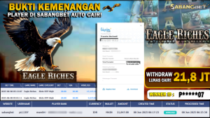 BUKTI KEMENANGAN 08 JUNI 2025 DI GAME EAGLE RICHES WD 21,8 JUTA