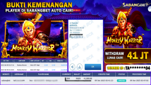 BUKTI KEMENANGAN 09 JUNI 2025 DI GAME MONKEY WARRIOR WD 41 JUTA