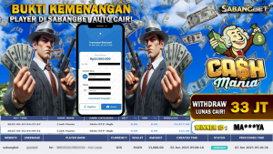 BUKTI KEMENANGAN 03 JUNI 2025 DI GAME CASH MANIA WD 33 JUTA