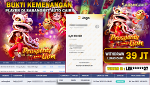 BUKTI KEMENANGAN 04 JUNI 2025 DI GAME PROSPERITY LION ‘PG SOFT’ WD 39 JUTA