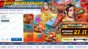 BUKTI KEMENANGAN 02 JUNI 2025 DI GAME FLOATING DRAGON ‘PRAGMAGTIC PLAY’ WD 27 JUTA