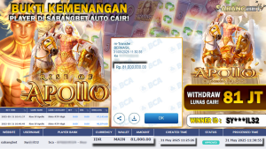BUKTI KEMENANGAN 31 MEI 2025 DI GAME RISE OF APOLLO ‘PG SOFT’ WD 81 JUTA