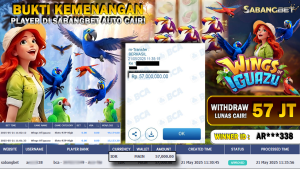 BUKTI KEMENANGAN 21 MEI 2025 DI GAME WING OF IGUAZU ‘PG SOFT’ WD 57 JUTA