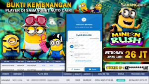 BUKTI KEMENANGAN 20 MEI 2025 DI GAME MINION RUSH WD 26 JUTA